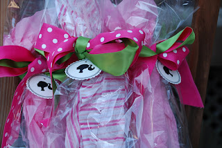 I am going to a birthday dinner tonight for three girls and wanted to just bring something - even though it is a no gift party. I bought three pink soaps, used the clear bag they gave me to take home, some of my pink stripped tissue paper from Target and of course lots of ribbon. I love having a reason to use my silhouette round scalloped tags.