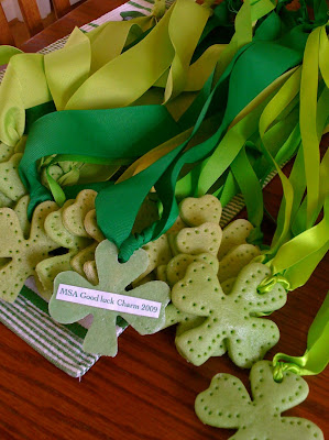 tutorial on 2clever for the teacher's St. Patrick's day gift, my friend and I decided to make a salt dough necklace for everyone in the 4th grade class (130) as a good luck charm for their Testing next week.