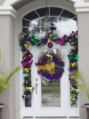 I seriously got chills seeing this Mardi Gras door! How many of these decked-out doors have I seen at this time of year in my beloved New Orleans?! Forget Valentines day down there, ya'all - it's Christmas and then straight on to Mardi Gras! It's about time for me to lug my big old box of beads out and start decorating.