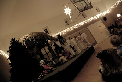Look at that nativity scene! Holy cow that is the best one I have ever seen! Annie Kate looks so cute being an angel.