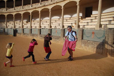 - I look back through our Spain trip daily and will be so mad at myself if I don't write about every day because it was so memorable. (oh ya and finish Belgium and France - I need to clone myself) This photo of the girls with Jeff in Ronda in the bull fighting ring could be my favorite picture from the trip.