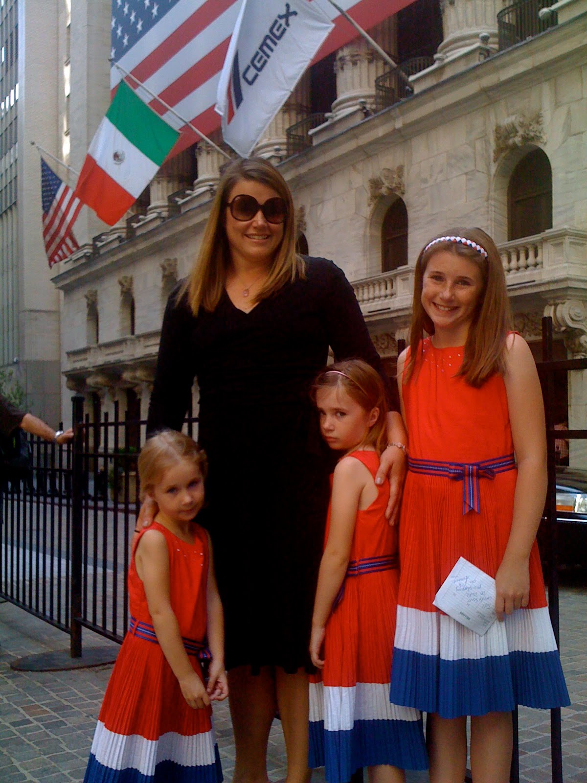 Then last week our family went to New York City. We got to watch the closing 4:00 pm closing bell at the New York Stock Exchange. (note Caroline still mad about how much stock she lost that day)After we got out I told Jeff we have got to find a fabric store in the city so I can get those chairs recovered. Telling Jeff that at 4:30 pm we need to drive around NYC and find a fabric store produced a priceless face.