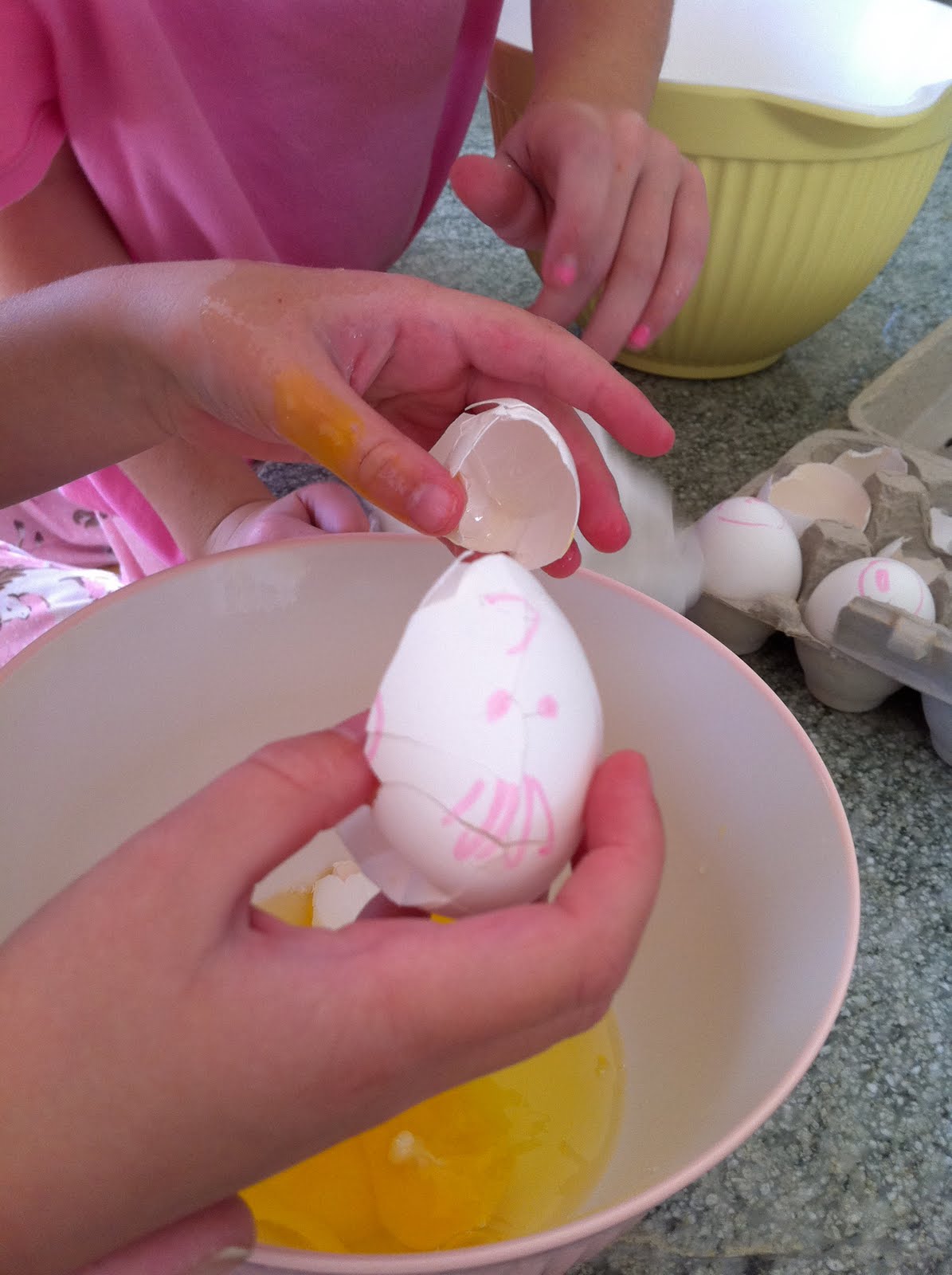 I love your idea!! thanks for sharing! I usually let them do it and then pick out shell if I have to (I get shell in there every so often too:)