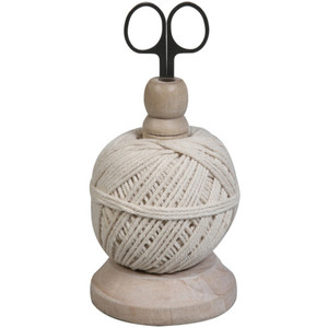 - yarn spool with scissors on top - I bought this at a specialty store in town and love the concept of always having string to tie and scissors to cut.