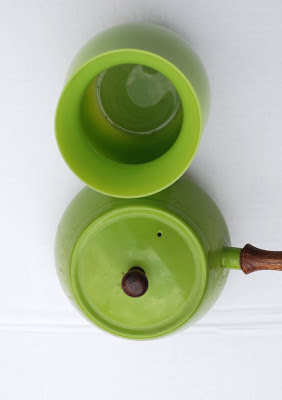 Today after I picked up the girls from school we went to Goodwill and I told them to each find something green for us to buy. Caroline picked out the $.99 cent green glass vase and Sally Jane found the $1.99 green metal tea pot. It was perfect because together they look just like the number 8.