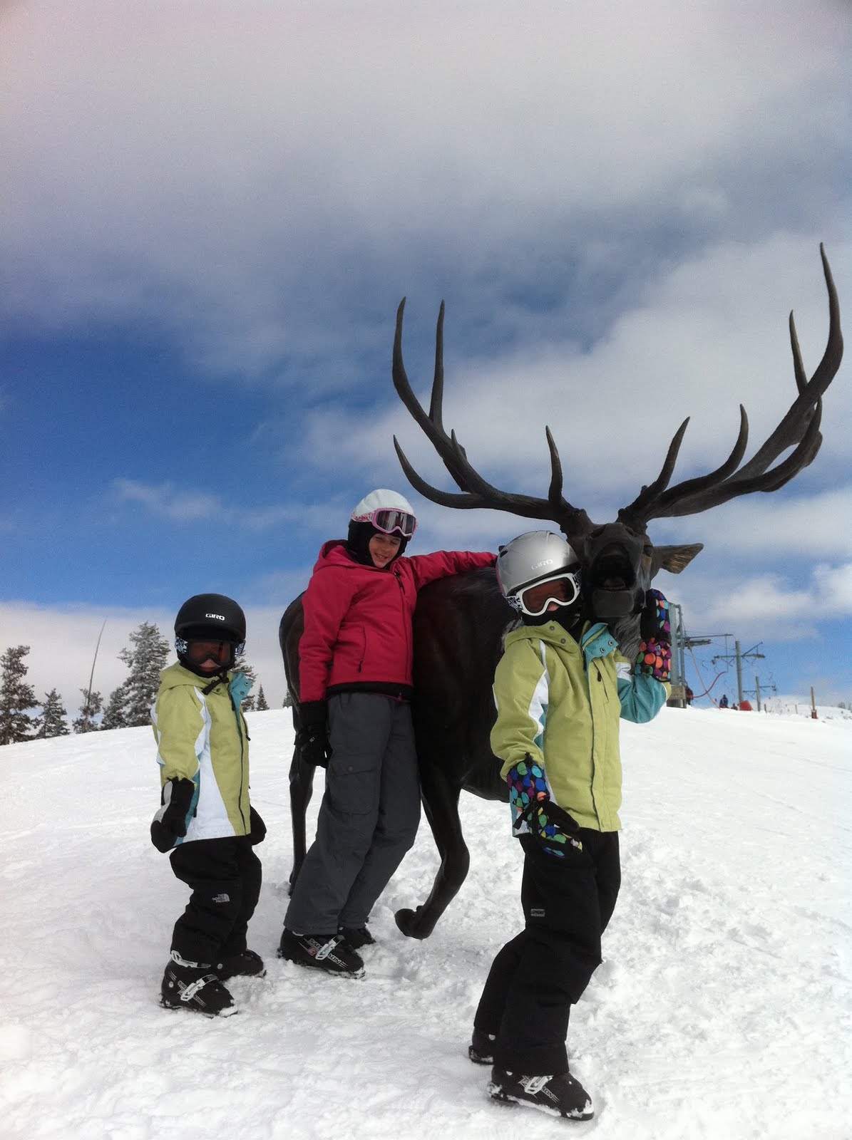 The kids at the top of the mountain after lunch at 2 Elks lodgeJill asked me if I am liking skiing. The answer would be yes, with a twist. I enjoy the skiing part because this is the first year I don't think I am going to die doing it.